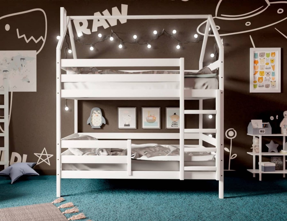 Кровать-домик двухъярусная 80*160 Белый